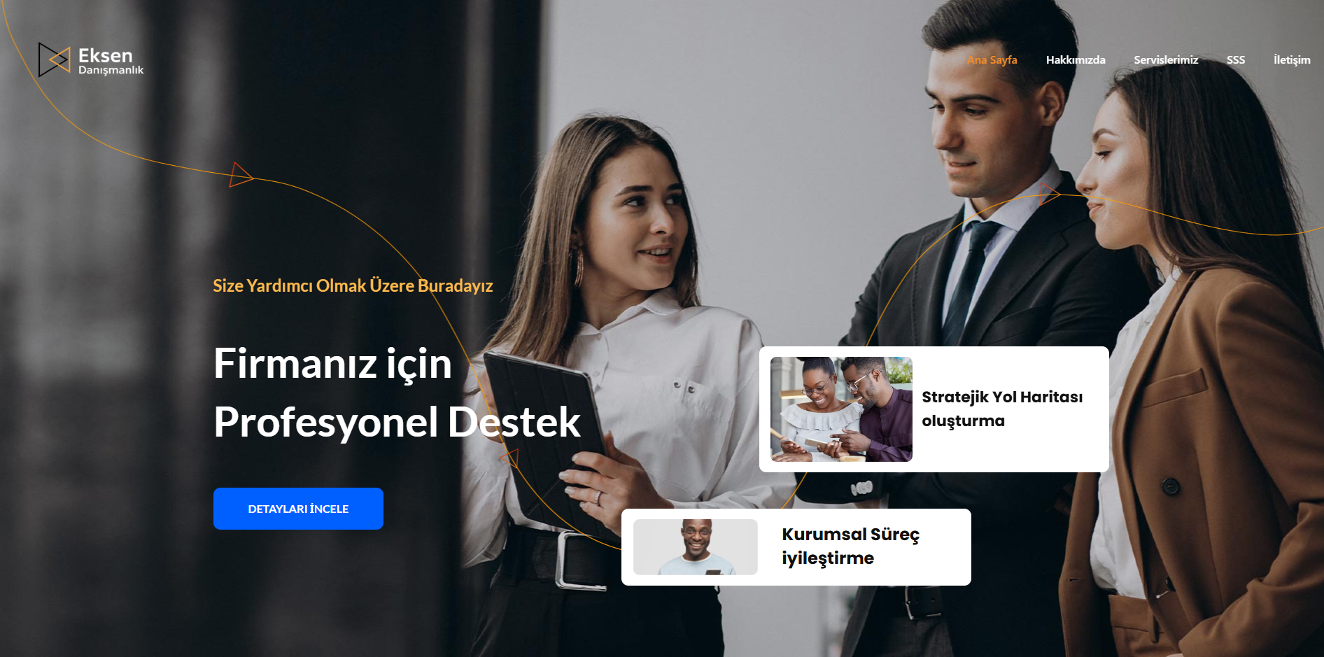 İçerik hiyerarşisi, net mesajlar ve profesyonel görünüm önceliklendirilmiştir.