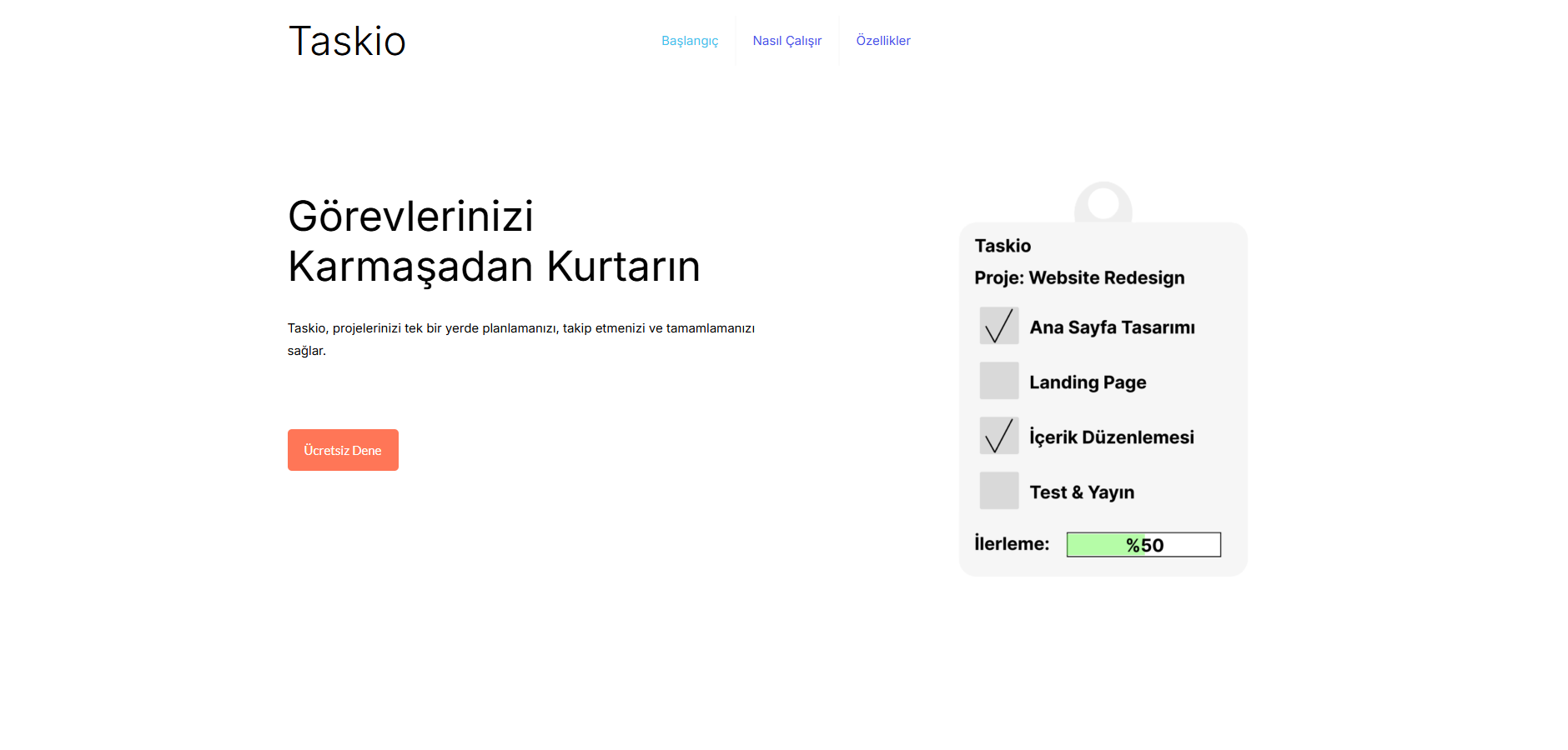 Görev ve proje yönetimi için tasarlanmış, dönüşüm odaklı bir SaaS landing page çalışması.